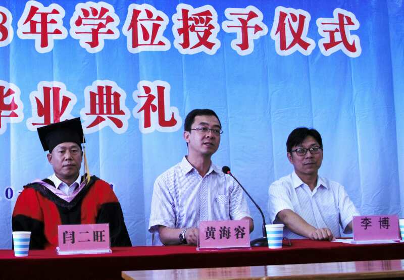 大会第五项,我系党总支书记黄海容老师作了补充强调。黄书记首先强调了仪式感对一个人一生的重要性,这也是对我系本次毕业典礼重要性的认可。作为新时代的进步青年,黄书记希望各位毕业生能够一生怀有信仰,有所追求,终身学习,不忘初心,快乐生活,勇作时代的佼佼者;在新时代继续书写好自己的人生故事;在新征程中以无悔的奋斗圆梦新时代。